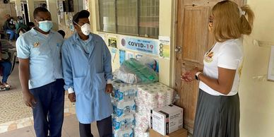 Vice President Akeaba Williams making medical supplies donation to the Lionel Town Hospital.